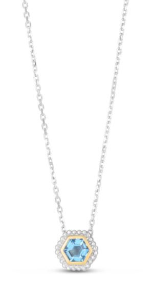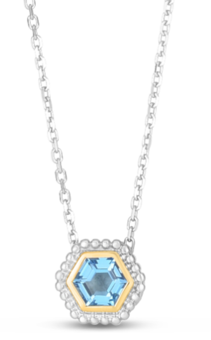 Go to the shop18kt+Silver Yellow+Rhodium Finish Popcorn Pendant with 8mm Hexagon Light Swiss Blue Topaz+Sterling Silver 18" with Rhodium Finish 1.5mm Diamond Cut/Textured Oval Cable Chain with Lobster Clasp Pendant and Diamond Cut Cable Set